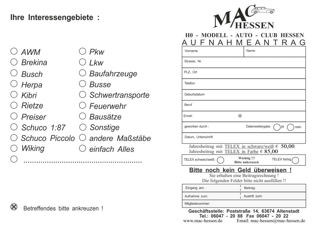 Neuheitenvorstellungen und Clubinformationen im monatlichen TELEX mit Anzeigenrubrik auch hier auf dieser Homepage.